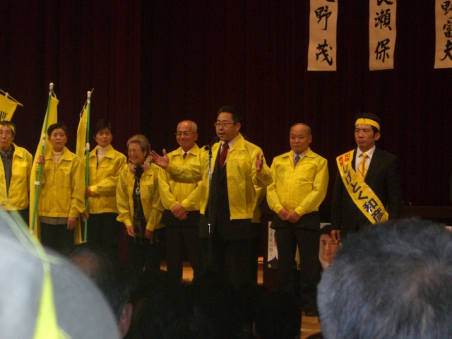 党本部からは河村建夫 選挙対策局長(麻生内閣 元官房長官)と小池百合子総務会長が応援にやってきました。そんなことなら何故に党本部の推薦を出さなかったのだろうか?下々の党員として疑問であります。